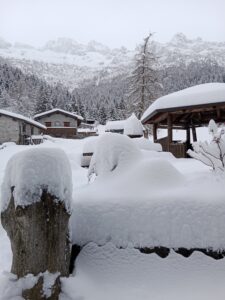 Sera. Domenica sera, 25 gennaio scendevo a piedi dal rifugio verso il paese. Giunta appena oltre il bivio del Sergio, mi sono girata per salutare le mie montagne poiché per alcuni giorni non avrei potuto salirci. Lo spettacolo che si è presentato ai miei occhi è quello che si vede nella foto in evidenza. Subito ho pensato di condividerla con voi che non eravate presenti. Naturalmente la realtà è mooolto più spettacolare! Dopo una giornata tutta in bianco e nero, essendo il cielo nuvoloso sopra la conca del Volano imbiancata da mezzo metro di neve fresca, morbida e farinosa, apprezzavo la sera colorata. Anche voi?